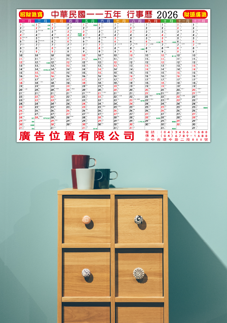 DY205 平面大年曆 (直式)