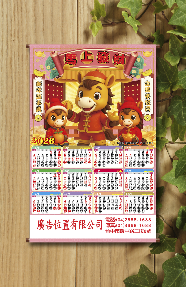DY205 平面大年曆 (橫式)